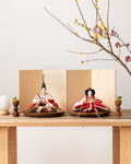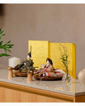 円型の台座。「時を結ぶ、雛飾り」のお雛さまを飾るために生み出された台座で、ちょうどよいバランス感となっております。