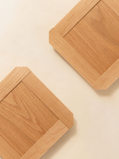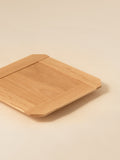素材は、丈夫なオーク材を使用。指物の技術を用いて制作しており、縁部分にはわずかな段差をつけて細部のディテイルにまでこだわった品です。上から見たときに風車のようであることから、家の中に福をめぐらせる「風姿の八寸盆」と名付けました。