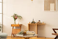 ベージュと若草色を合わせ、優しく個性ある佇まいに。