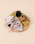 唐衣(1枚目の生地)に描かれた花々が引き立つような重ねにしました。個性と品のある色合いで、華やかな佇まいに。