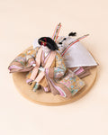 パッと明るく輝かせるような春の色彩。桜のモチーフと縁起の良い様々な自然界のモチーフが春の節句を祝います。精神的な幸福に満ち、道理に明らかで、人生、そして様々なもの人やものごとを明るく照らすような子に育ってほしいという願いが込められています。
