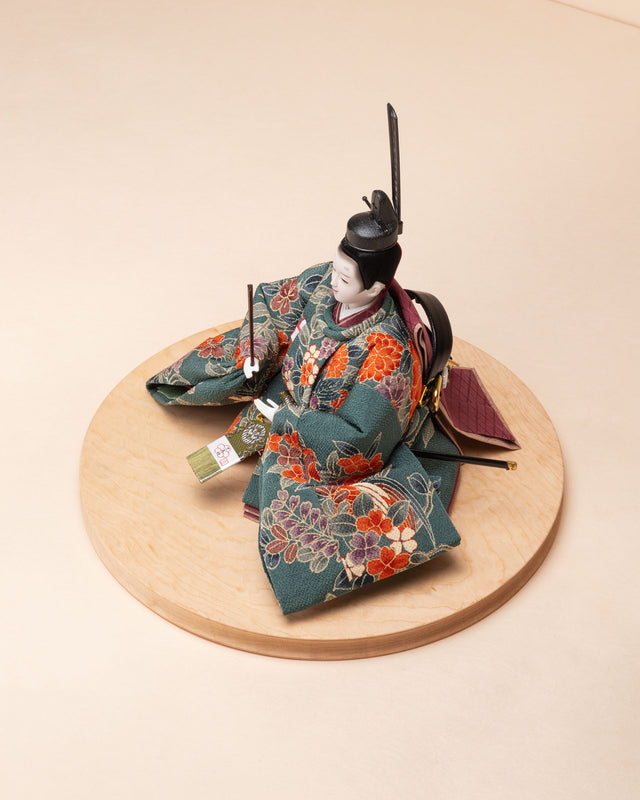 深き緑に古典草花や鳳凰をまとったお殿さま。