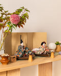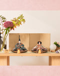 やわらかな表情の姫と殿。繊細な技巧が施された、美しいお顔。ほんのり微笑み、ふっくらとおっとりとした表情に、時代を越える優美さと美しさを持ったお顔です。*見る角度により、表情が異なって見えます。写真によって異なる雰囲気をお楽しみください。