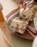 古くから親しまれきた牡丹。「邪気を払う縁起の良い花」とされてきた菊。花の付け方から、実り多い象徴とされてきた萩。優美で草木や花々と鳳凰が豊かな季節を祝います。
