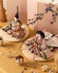 やわらかな表情の姫と殿。繊細な技巧が施された、美しいお顔。ほんのり微笑み、ふっくらとおっとりとした表情に、時代を越える優美さと美しさを持ったお顔です。*見る角度により、表情が異なって見えます。写真によって異なる雰囲気をお楽しみください。