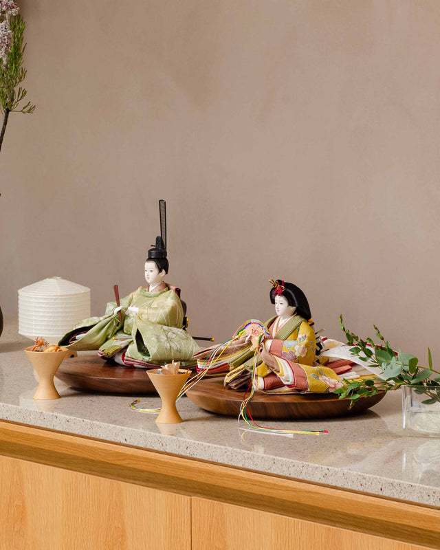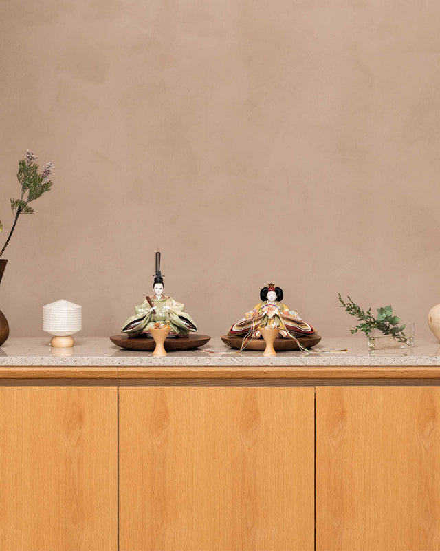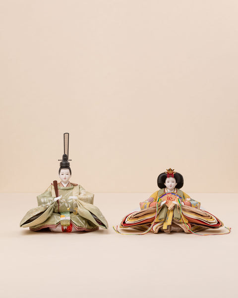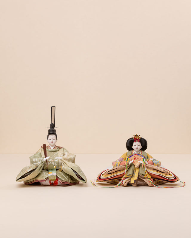 姫と殿で、自然と調和した色合いのお雛まさです。