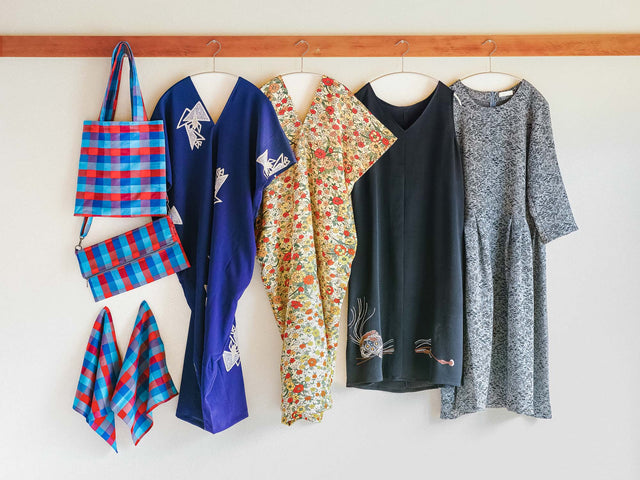 着物リメイクのセミオーダー「サイカイの衣」をお申込みする際、対象の小物セットの同時にご購入くださいませ。